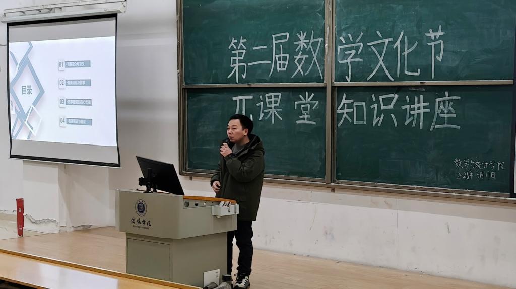 为提升专业素养,激发学习热情,3月17日,数学与统计学院在综合楼202教室举办第二届数学文化节“π课堂”系列活动—数学建模知识讲座。特邀学院资深指导教师孙利担任主讲,各年级学生代表参与。