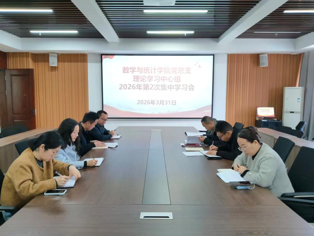 3月31日下午,数学与统计学院党总支理论学习中心组在综合楼715会议室召开2026年第二次集中学习会。会议由党总支书记郭二军主持,学院党总支委员、各支部书记参加了学习。