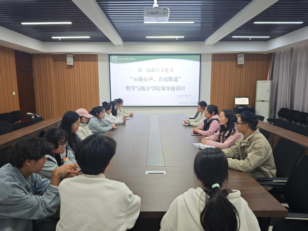 为搭建师生零距离沟通桥梁,倾听学生心声,3月27日,数学与统计学院在综合楼715会议室举办第二届数学文化节“π接心声,点亮数途”领导接待日活动。学院党总支副书记田媛、全体辅导员及各年级学生代表参加。