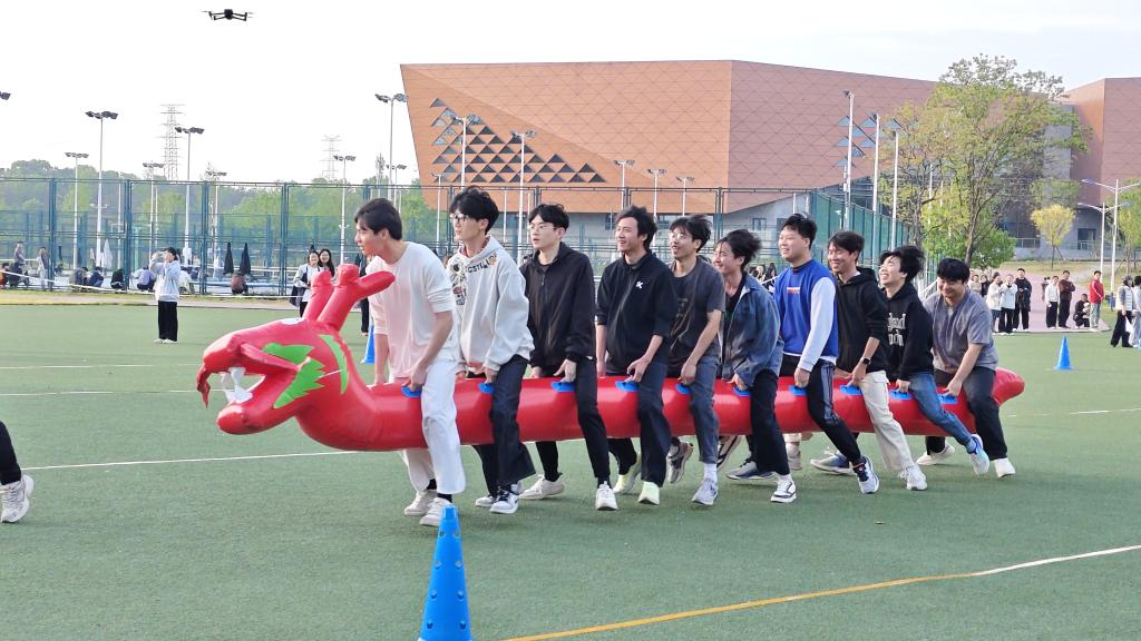 本次趣味项目比赛共设三个项目:50米陆地龙舟、同心击鼓和30米车轮滚滚。学生男子组、学生女子组及教职工组分别组队参赛,各组队员默契配合、团结协作,顺利完赛。