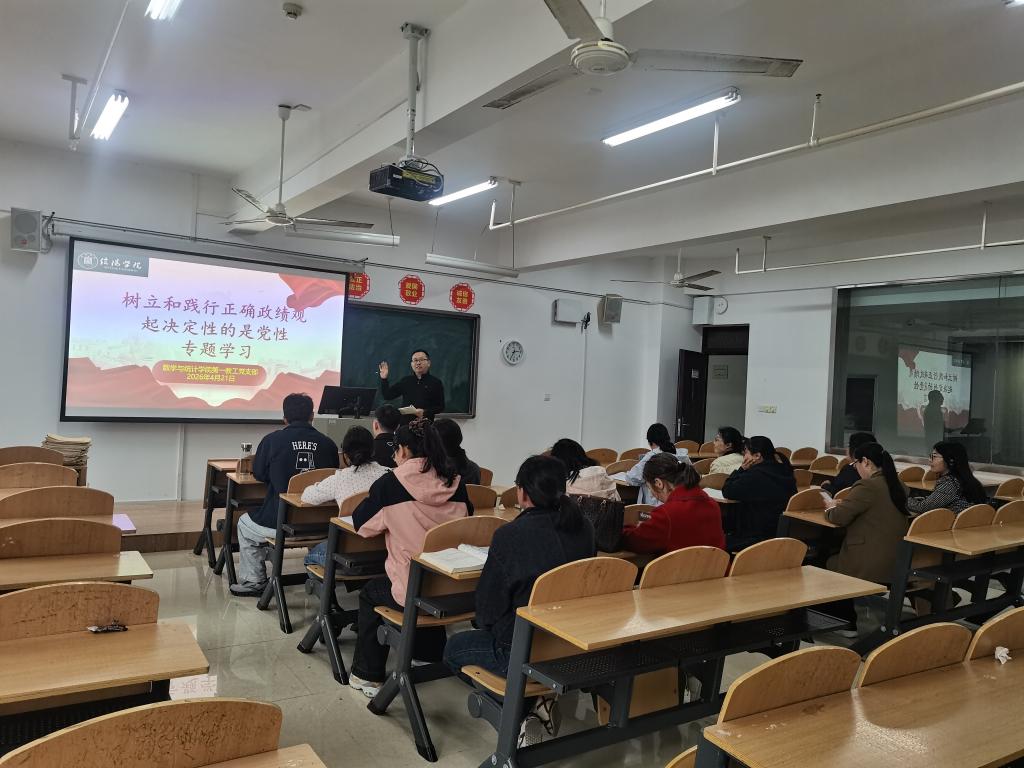 4 月 21 日,数学与统计学院第一、第二教工党支部分别召开专题学习会,深入学习习近平总书记关于树立和践行正确政绩观的重要论述,引导党员教师坚守育人初心、树立和践行正确政绩观 。