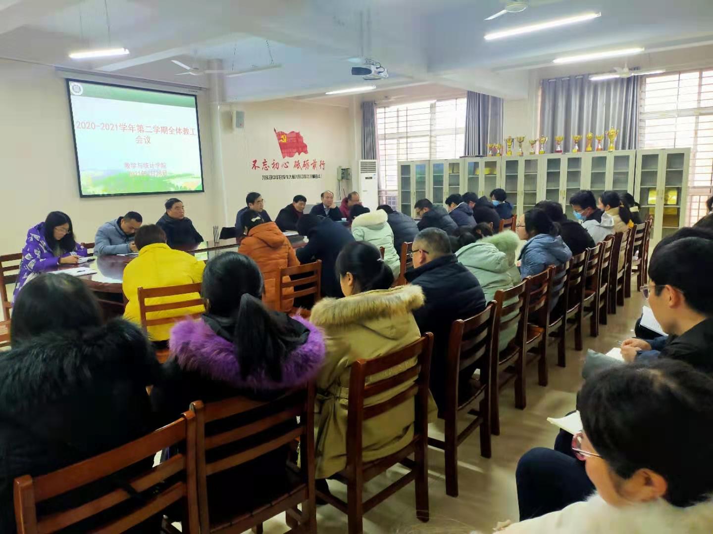 2月28日下午,数学与统计学院在数计楼407会议室召开2020-2021学年第二学期全体教工会议。