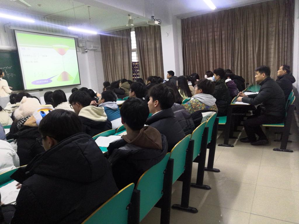 12月14日下午,校长王北生在教务处处长助理张敬生的陪同下,深入数计楼教室随机听取了数学与统计学院王爱菊老师的《解析几何》课程教学。