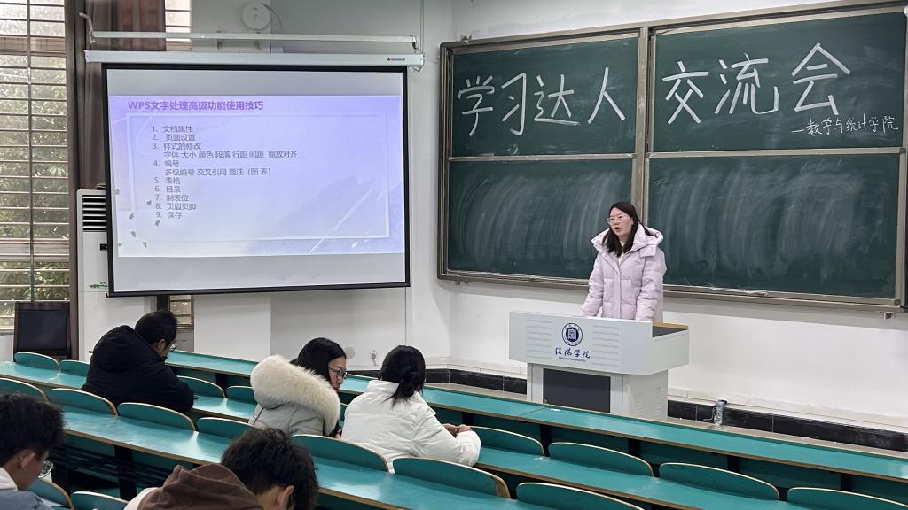 为进一步加强学风建设,营造浓厚的学习氛围,树立榜样力量,12月18日中午,数学与统计学院在数计楼106举行了学习达人经验分享交流会。数学与统计学院全体辅导员,2022级和2023级学生代表参与了此次活动。
