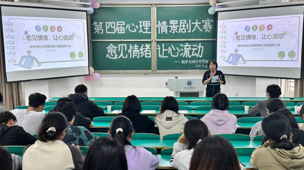 为全面贯彻党的教育方针,推进心理健康素质教育,促进大学生思想道德素质和心理健康成长,4月16日下午,数学与统计学院在数计楼107教室隆重举办第四届“愈见情绪,让心流动”心理情景剧大赛,学院党总支副书记刘颖方、学工干事田媛、二级心理辅导站站长范学琴、全体辅导员受邀出席。