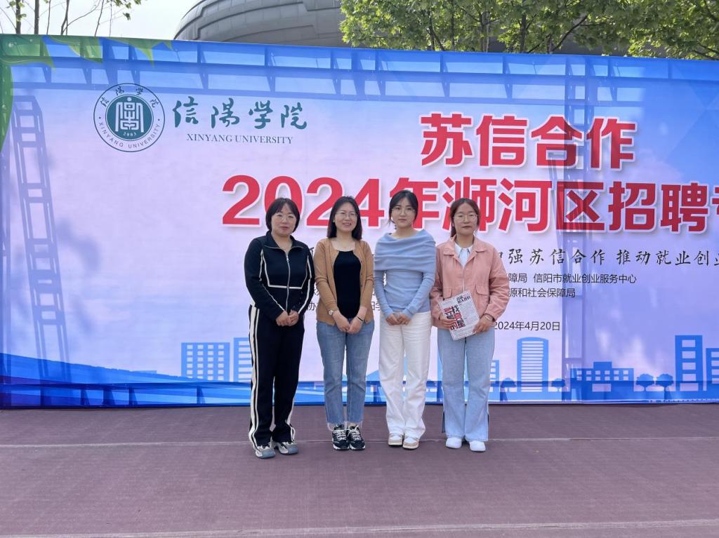 为深入贯彻落实教育部关于高校毕业生就业工作的决策部署,深化校企交流合作,拓宽毕业生就业渠道,按照学校深入推进访企拓岗促就业专项行动的要求,4月20日,数学与统计学院党总支副书记刘颖方带队与信阳衡水高级中学开展访企拓岗促就业相关活动,学工干事田媛、辅导员江燕、胡涛陪同参加。