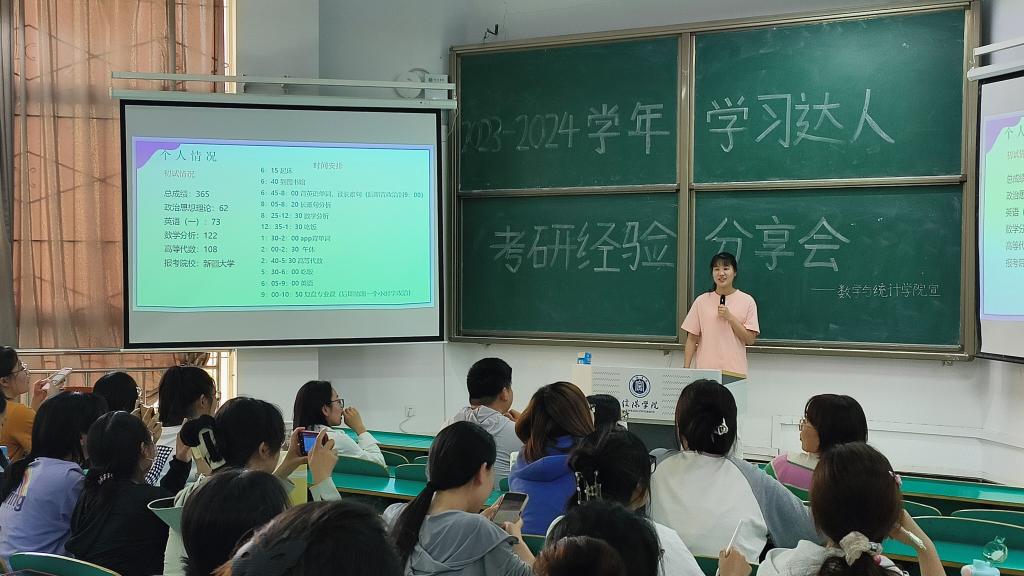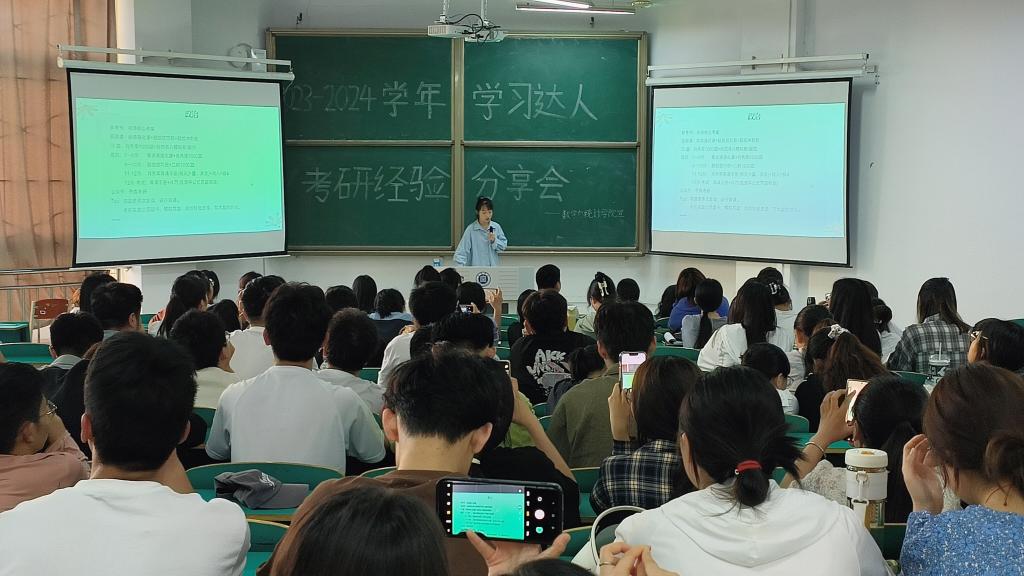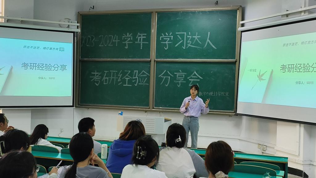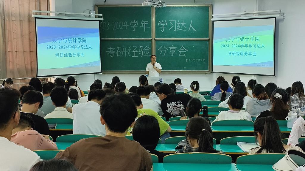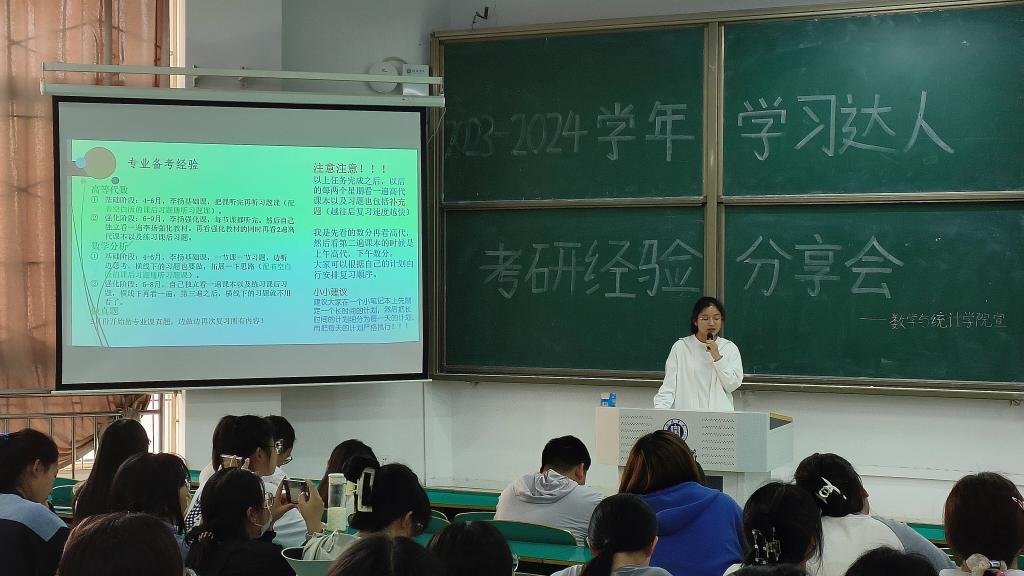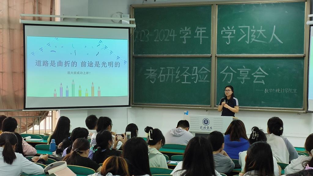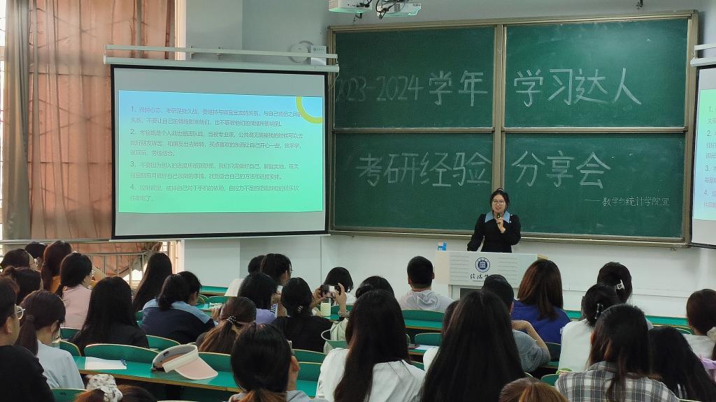 为进一步加强学风建设,营造浓厚的学习氛围,树立榜样力量,数学与统计学院于5月8日下午在数计楼207教室开展2023-2024学年学习达人考研经验分享会。学工干事田媛,团总支书记胡涛以及全体辅导员和2021级全体学生参加此次会议,会议由胡超主持。