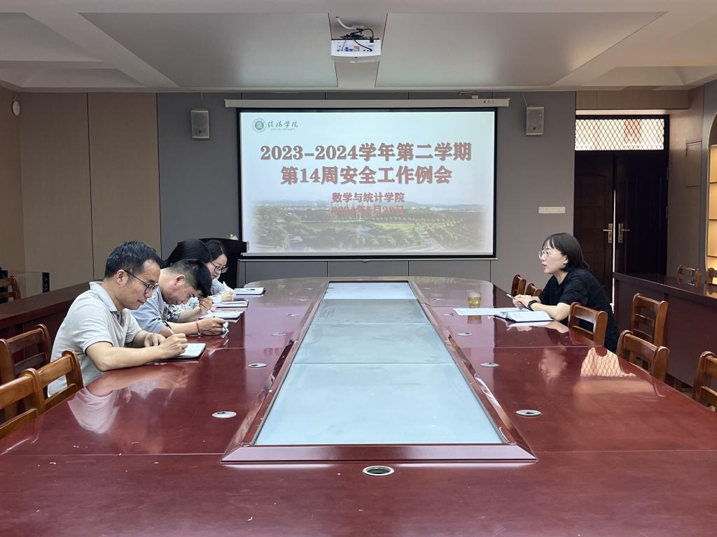 为进一步加强学院学生安全教育和管理工作,守牢毕业季学生安全底线,5月29日下午,数学与统计学院在数计楼407会议室召开本学期第十四周安全工作例会,学工干事田媛、全体辅导员参加会议,会议由田媛主持。