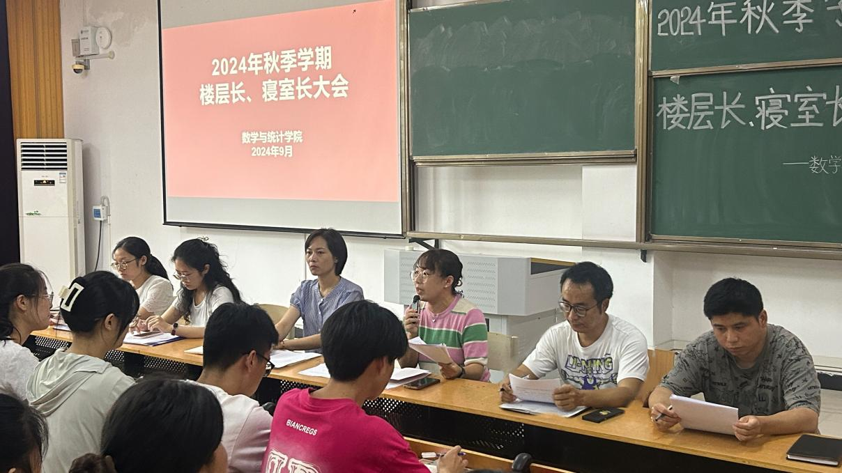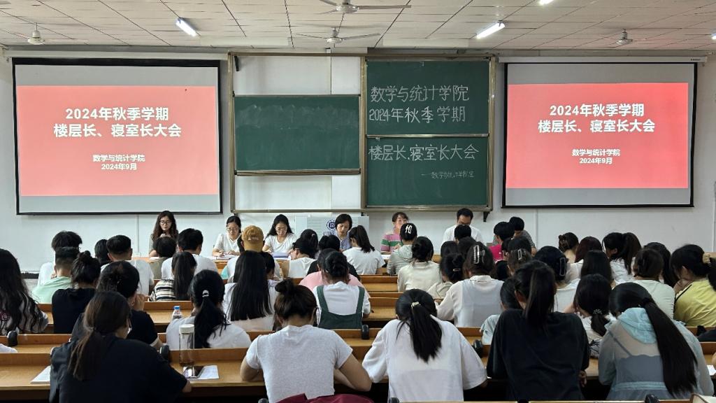 为总结寝室管理优秀经验、表彰先进、部署新学期工作,9月2日中午,数学与统计学院在社科楼219教室成功召开了2024年秋季学期楼层长、寝室长大会。学院党总支书记高昌慧、学工干事田媛、全体辅导员及各位楼层长、寝室长参会,本次大会由胡超主持。