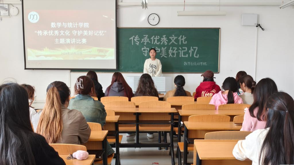 为深入贯彻落实习近平文化思想,用好信阳丰富的人文历史资源,10月22日中午,数学与统计学院在社科楼416教室开展“传承优秀文化 守护美好记忆”演讲比赛。