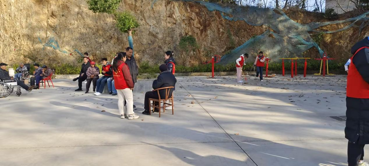 志愿者们准备了丰富多样的活动,既有陪伴老人聊天,也有陪老人下象棋,现场欢声笑语不断,气氛温馨而热烈。接着,志愿者们还分组进行卫生打扫,经过地面清扫、物品整理、窗户擦拭和公共设施清洁,整个敬老院焕然一新,增添了更多的温暖。