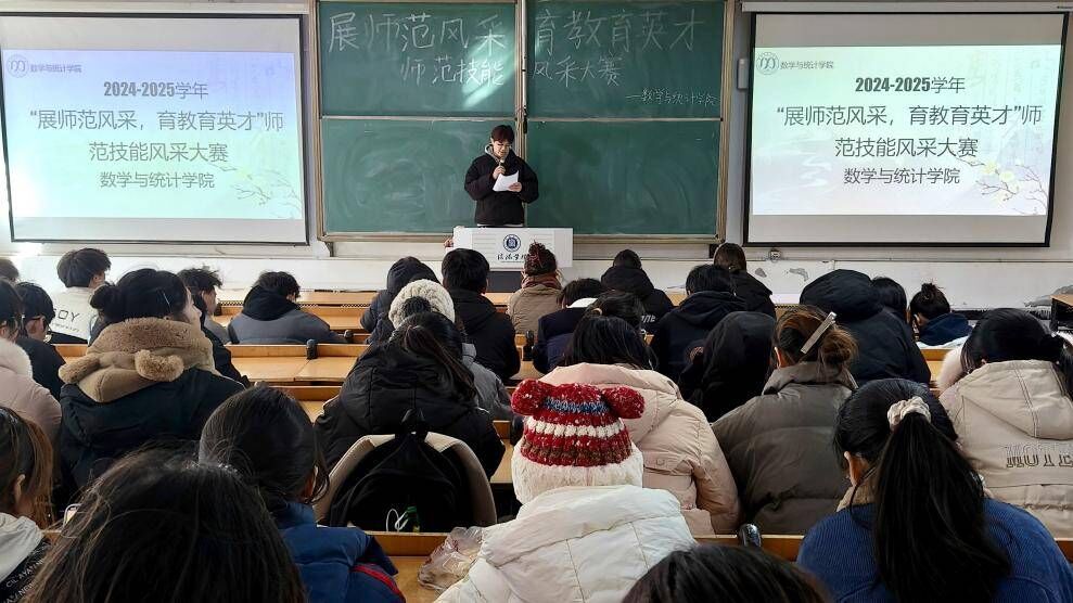 为进一步加强我校师范生专业技能培养,搭建“以赛促教,以赛促学,以赛促改”的教学交流平台,促进师范生教学能力及综合素质的提升,12月13日,数学与统计学院在社科楼112教室开展了“展师范风采,育教育英才”师范技能大赛。