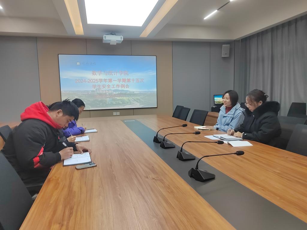 12月18日上午,数学与统计学院在社科楼419会议室召开本学期第十五次安全工作例会,学院党总支书记高昌慧、学工干事田媛及全体辅导员参加了本次会议,会议由田媛主持。
