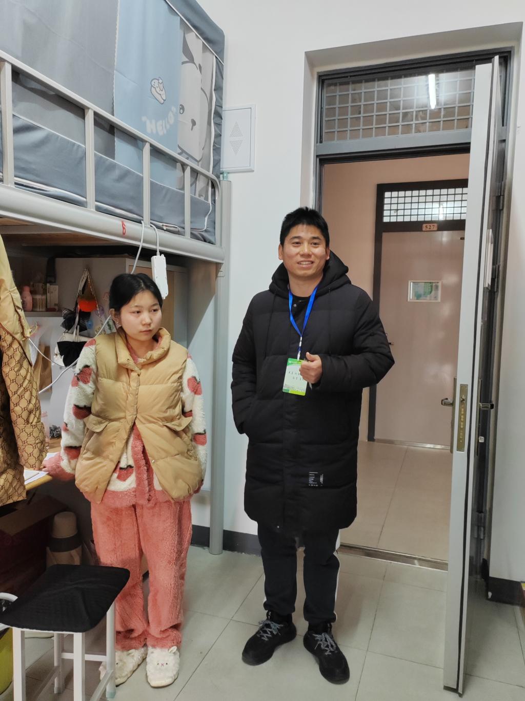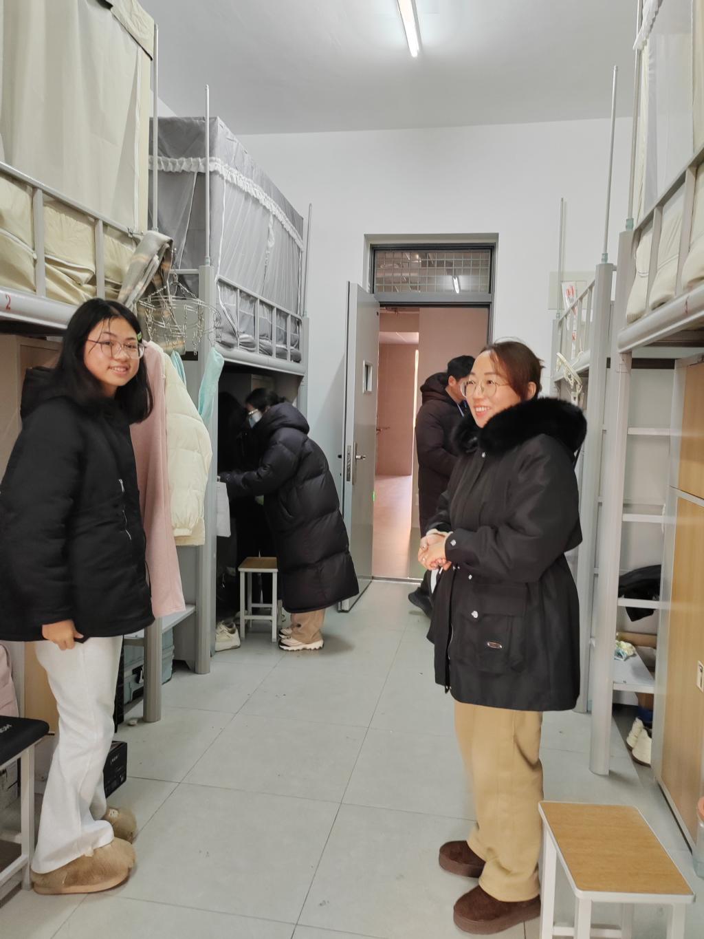 走访期间,田媛与同学们亲切交谈,详细询问了同学们的期末备考情况,叮嘱同学们一要注意宿舍用电安全,离寝务必断电;二寒冬里要注意保暖,作息要规律,饮食不贪凉;三要合理安排时间,诚信应考。希望同学们都能取得理想成绩,度过一个安全快乐的假期。同时,老师们重点对宿舍卫生、设施运行、安全隐患等情况进行全面排查,针对学生提出的诉求与问题进行了详细登记与反馈,针对发现的问题及时要求学生整改,做好安全教育。