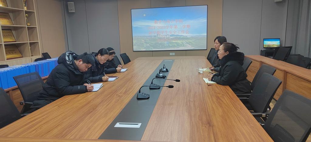 为保障新学期学生工作稳定、有序开展,2月14日下午,数学与统计学院在社科楼419会议室召开2024-2025学年第二学期学生安全工作会,党总支书记高昌慧、学工干事田媛、全体辅导员参加会议,会议由田媛主持。