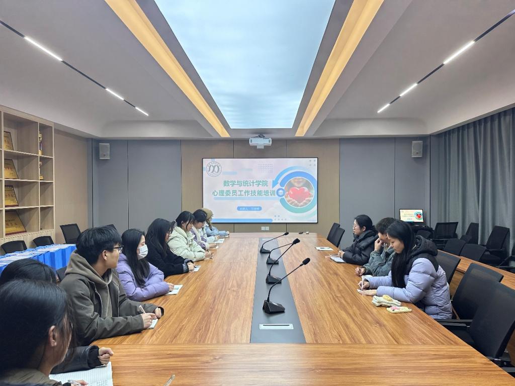 为进一步提升班级心理委员的专业素养和工作能力,充分发挥学生干部在心理健康教育中的桥梁作用,3月4日晚19:00,数学与统计学院在社科楼419会议室召开了心理委员工作技能培训会。学院二级心理辅导站站长范学琴、心理健康中心成员和各班心理委员参加培训,培训由范学琴主讲。