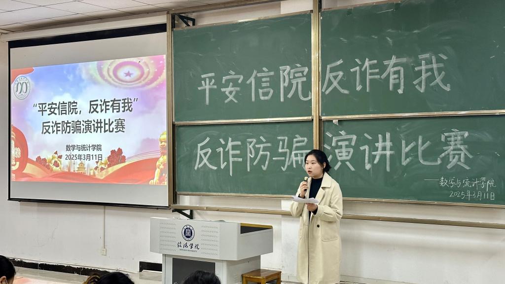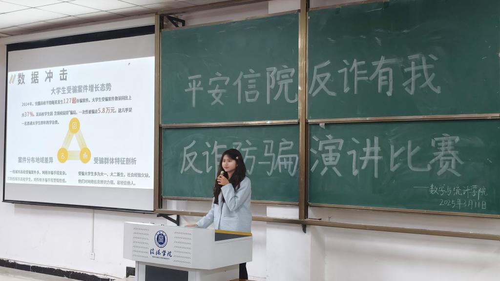 为积极响应习近平总书记关于打击治理电信网络诈骗犯罪的重要指示精神,切实提升学生的识骗、防骗能力,3月11日下午,数学与统计学院在社科楼219教室成功举办了“平安信院 反诈有我”校园反诈防骗演讲比赛。学院学工干事田媛、全体辅导员担任评委,200余名学生代表观看了此次比赛。