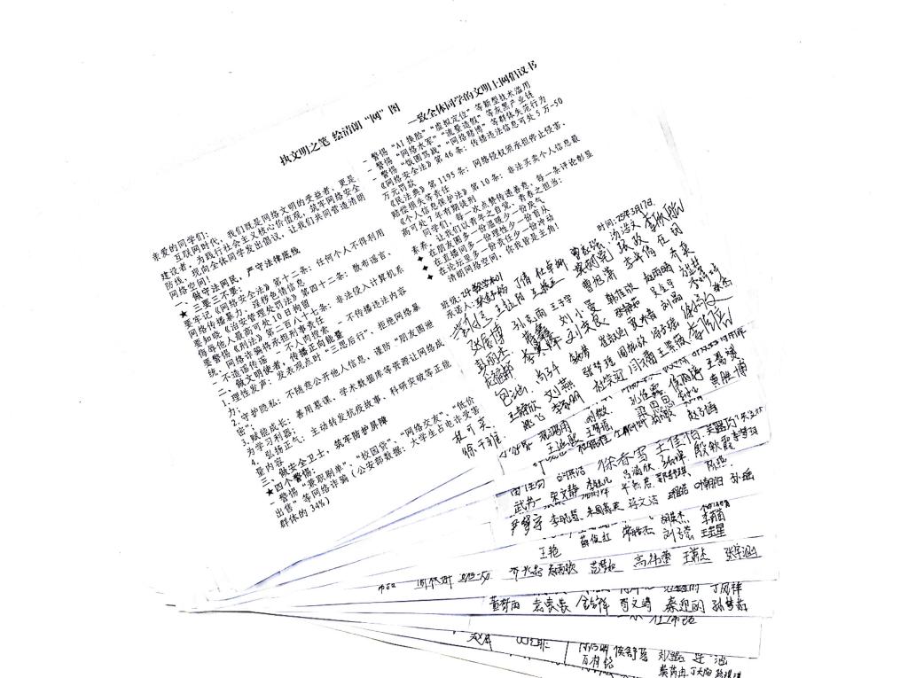 各位辅导员老师结合实际案例,充分利用多媒体信息技术手段,引导学生树立正确的网络安全观,增强网络文明意识,老师们还带领大家分析了网络暴力和网络诈骗等现象,提醒学生在网络中要时刻保持警惕,避免上当受骗。最后,全班同学签署文明上网倡议书。