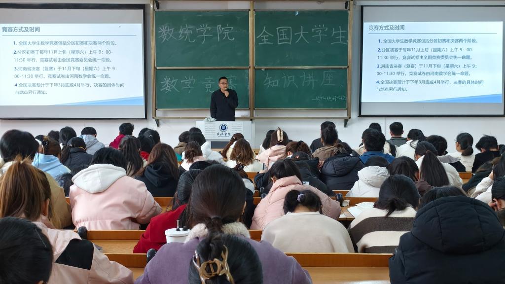 为助力学生高效备赛、提升学科素养,3月20日,数学与统计学院在社科楼112教室举办全国大学生数学竞赛专题指导讲座,特邀学院资深指导教师王玉磊副教授担任主讲,各年级学生代表200余人参会。