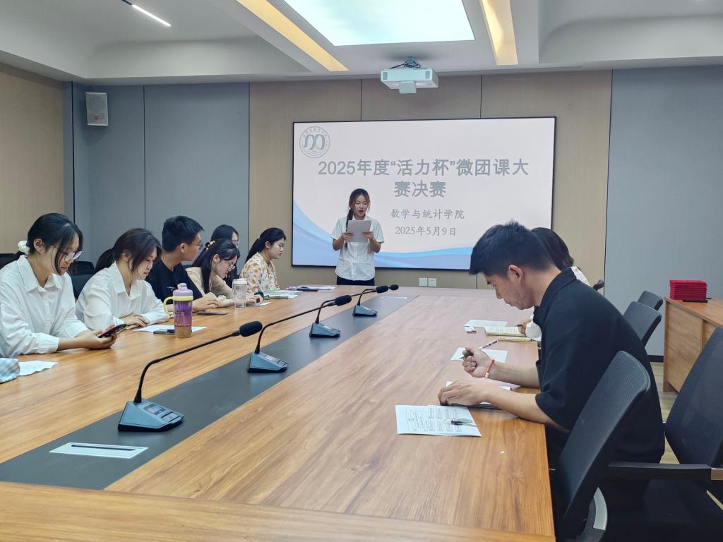 为深入学习贯彻习近平新时代中国特色社会主义思想和党的十九大精神,提升团干部的理论水平与实践能力,5月9日,数学与统计学院在社科楼419会议室举办了2025年度“活力杯”微团课大赛决赛。学院党总支书记高昌慧、学工干事田媛、团总支书记胡涛出席本次活动并担任评委。