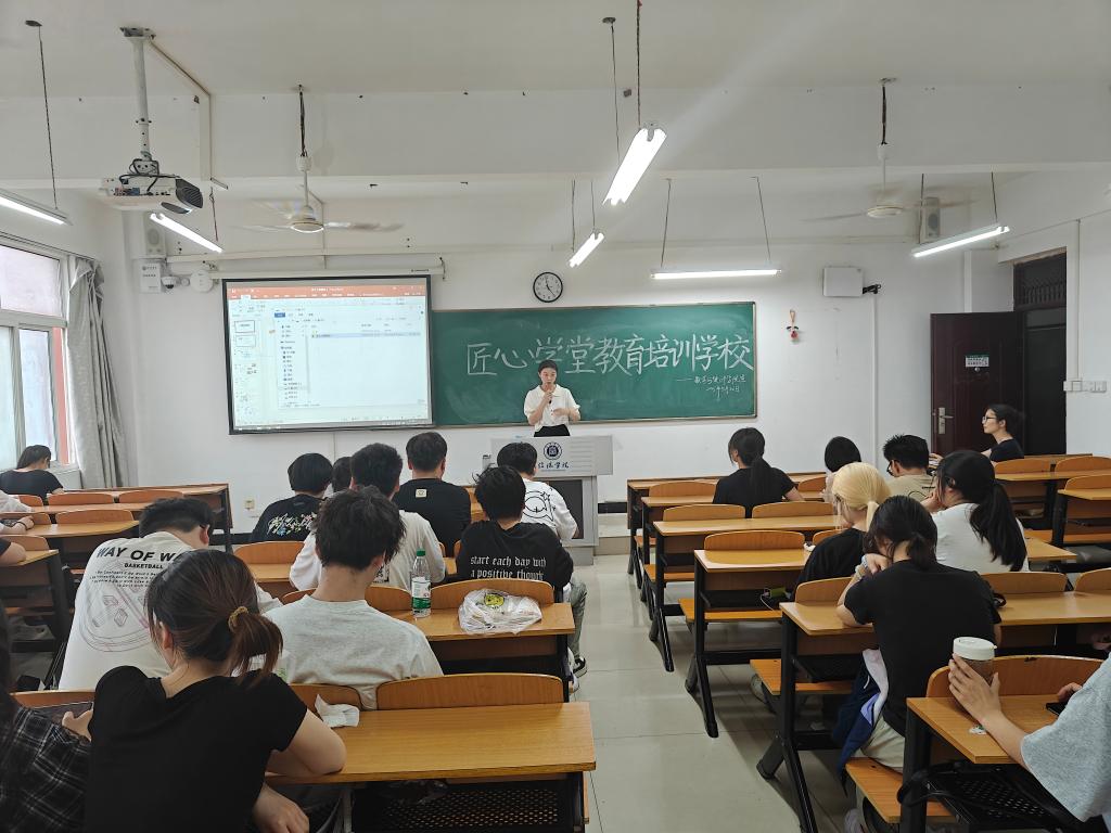 招聘宣讲会上,宣讲人董老师详细介绍了学校的发展历程、具体的薪资待遇范围以及培训流程,并针对同学们的咨询问题进行了重点回复。