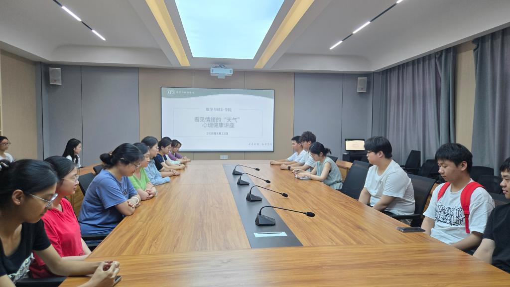 5月22日中午,数学与统计学院在社科楼419会议室召开心理健康讲座,讲座以看见情绪的“天气”为主题,使同学们了解情绪是心理系统的自然调节,学会理性看待问题,避免因情绪失控而带来的不良后果。