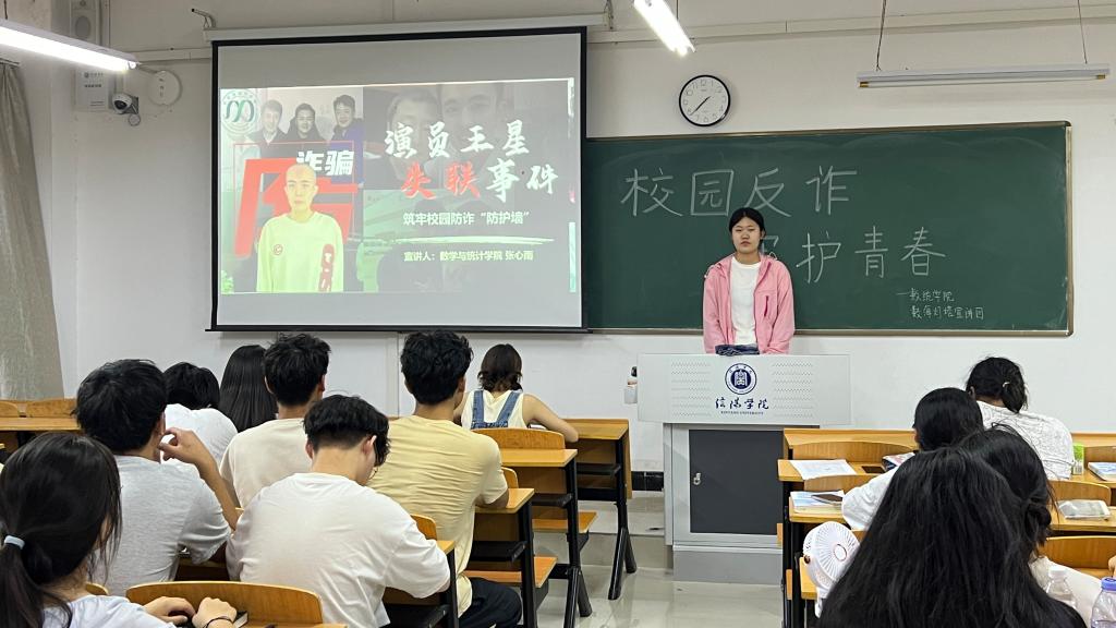 活动期间,10名数海灯塔宣讲团成员利用课余时间,分组深入各班,面向全体学生开展反诈知识宣传。宣讲过程中,成员们以生动详实的案例为切入点,结合图文、视频等多种形式,将复杂的反诈知识转化为通俗易懂的内容,让各类防范措施和应对方法入脑入心。宣讲结束后,不少同学已能够自主识别常见诈骗套路,并主动向身边人分享反诈知识。