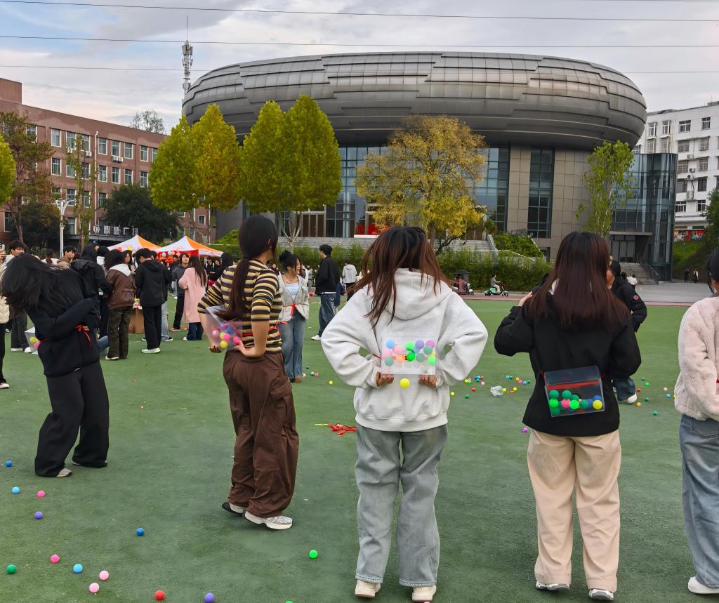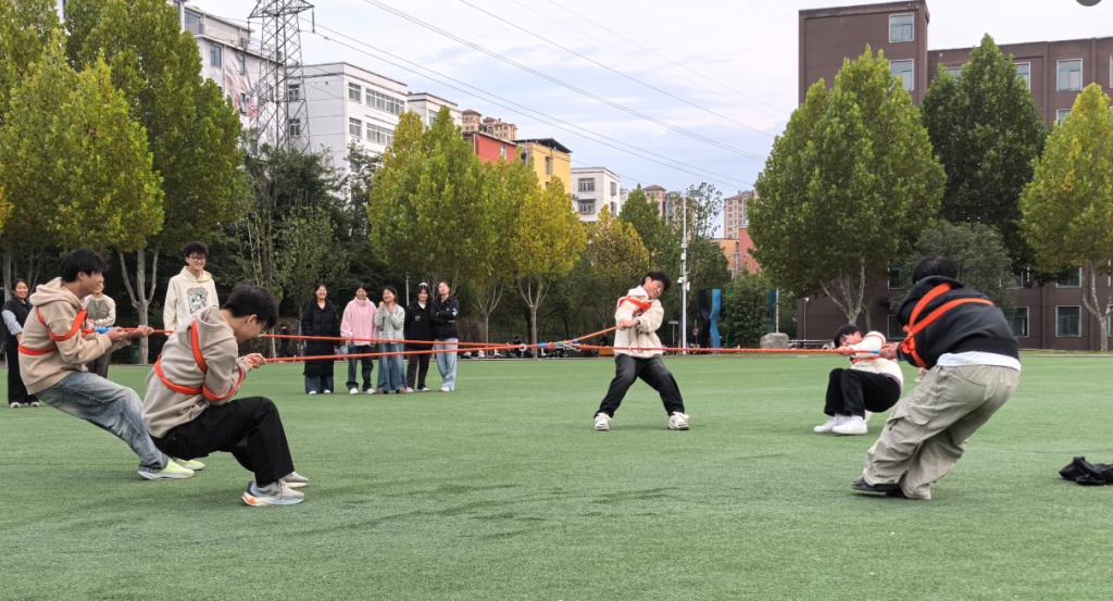 活动现场,“珠行万里”“塑料球大逃亡”“多向拔河”等趣味游戏,让同学们在协作中收获快乐,在互动中舒缓心情。“珠行万里”考验团队配合,同学们手持管道接力传送小球,精准衔接中培养默契;“塑料球大逃亡”游戏里,绑着道具盒的参与者通过肢体摆动抖落盒内小球,夸张的动作引发阵阵笑声;“多向拔河”环节,各队伍凝心聚力、奋力拼搏,现场呐喊助威声此起彼伏。整场活动将心理疏导融入游戏,既释放了学习压力,又强化了同学们的团队意识与归属感。