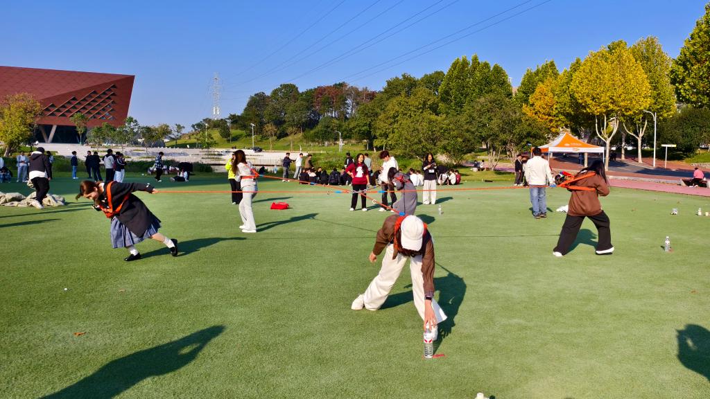 为缓解同学们的心理压力,让同学们以积极乐观的心态投入到学习中,10月23日下午,数学与统计学院在音乐厅前广场开展“青春结伴,趣享自然”心灵派对户外活动,组织了“龟袋鼠跳”“多向拔河”“珠行万里”“一圈到底”“塑料球大逃亡”等多种游戏,活动吸引了两百余名学生的积极参与。