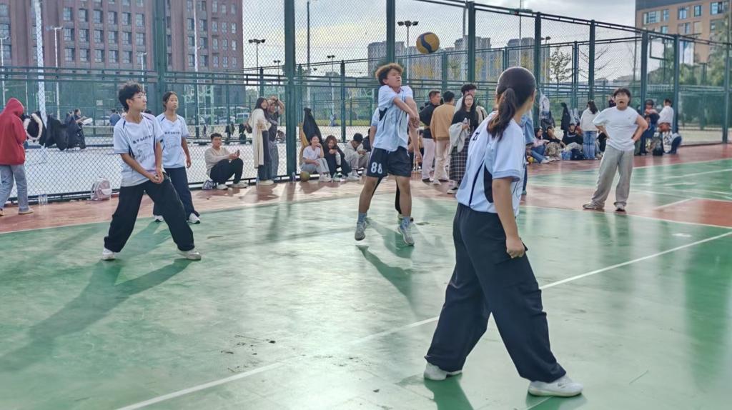 比赛在热烈的氛围中拉开帷幕。场上,新老生们默契配合,精准传接,奋力扣杀,展现了出色的运动风采和团队协作精神。赛场下,观众的加油声、呐喊声此起彼伏,气氛热烈。