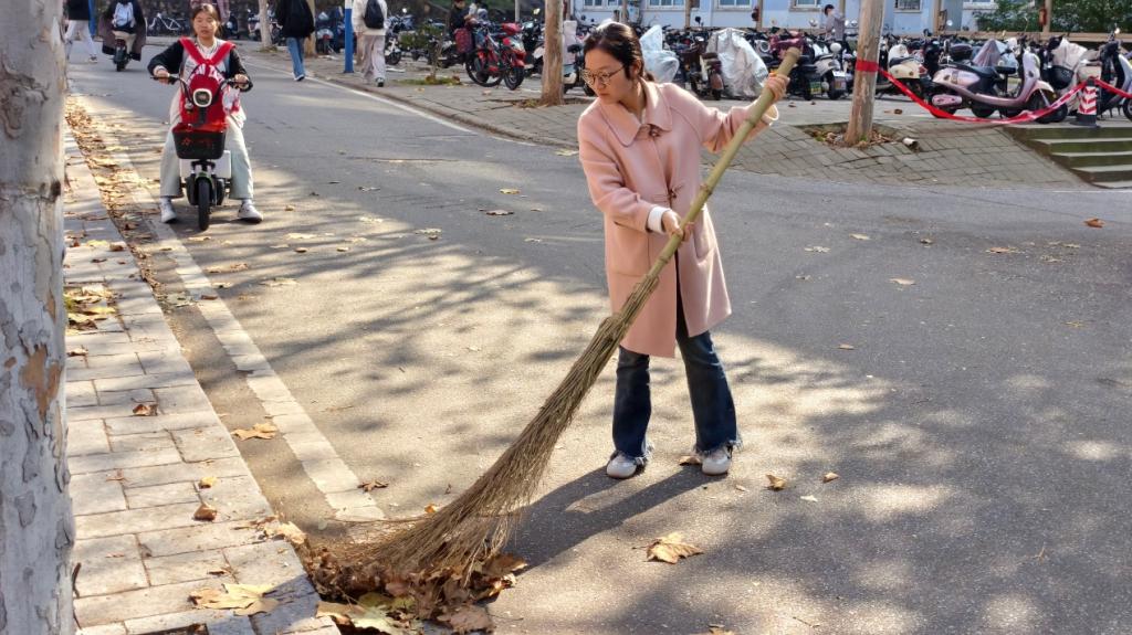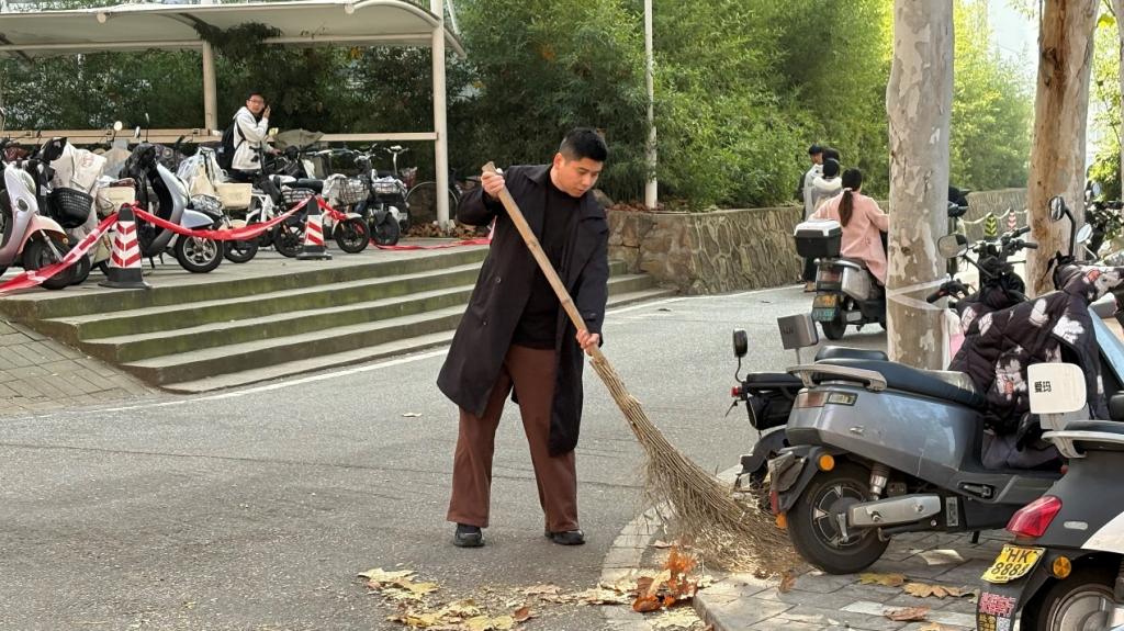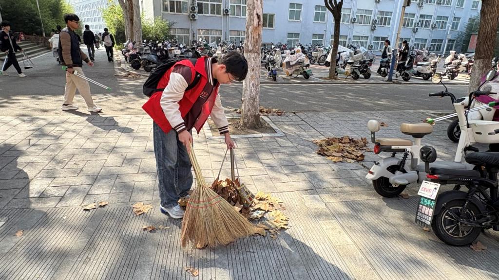 为强化新生团员的劳动观念,涵养责任担当意识,11月16日中午,数学与统计学院在卫生区开展新生团校第二课以“劳动润心,整洁育人”为主题的劳动教育活动。学院辅导员江燕、胡涛全程带队指导,25级全体新生团员参与活动。