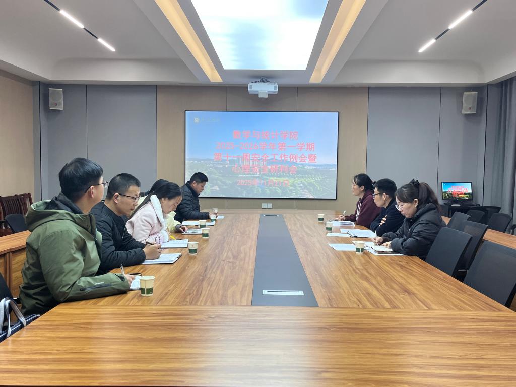 为进一步加强学生安全管理,精准研判学生心理状况,筑牢校园安全防线,数学与统计学院于11月21日在社科楼419会议室召开了2025-2026学年第一学期第十一周安全工作例会暨心理安全研判会。学院党总支书记郭二军、学工干事田媛、学校心理健康中心于凤花及全体辅导员参加。会议由田媛主持。