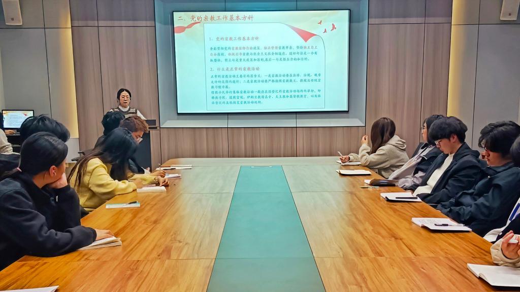 为引导新生树立正确的宗教观,增强抵御宗教渗透的思想自觉和行动自觉,11月28日下午,数学与统计学院在社科楼109会议室举行新生团校第五讲“大学生如何正确认识和对待宗教”,本次培训由范学琴主讲,全体新生团员参加。