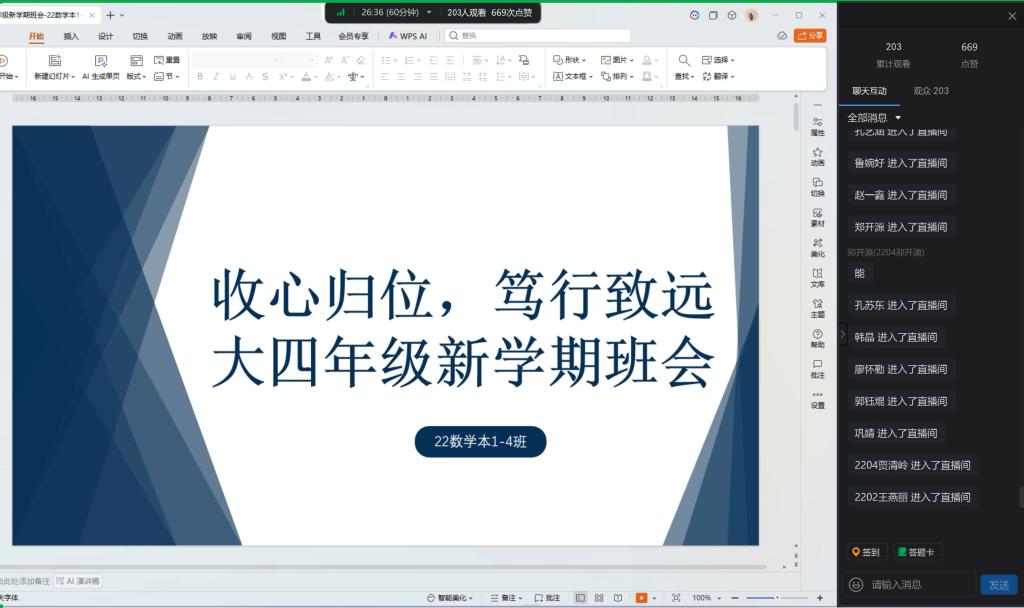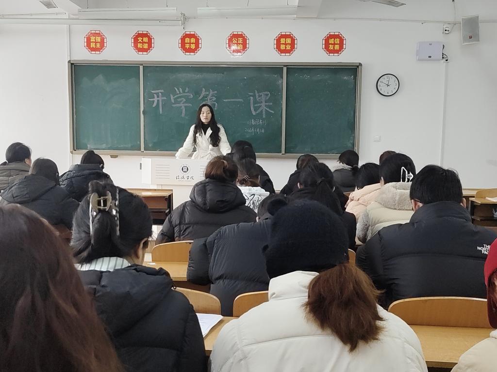 班会紧扣“收心教育”与“安全教育”两大核心。收心教育环节老师们引导学生复盘假期生活、调整作息节律,明确课堂纪律、考勤要求,鼓励制定新学期学习计划与成长目标,让学生迅速从假期模式切换到学习模式,以严谨务实的态度投入专业学习与科研备考。