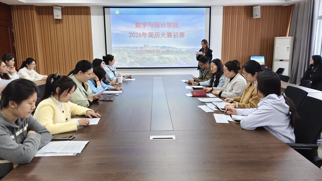 为进一步强化就业育人实效,提升学生求职简历制作水平,助力学子夯实求职基础,3月31日下午,数学与统计学院在综合楼715会议室举办2026年简历大赛初赛,学院党总支副书记田媛、全体辅导员担任评委。