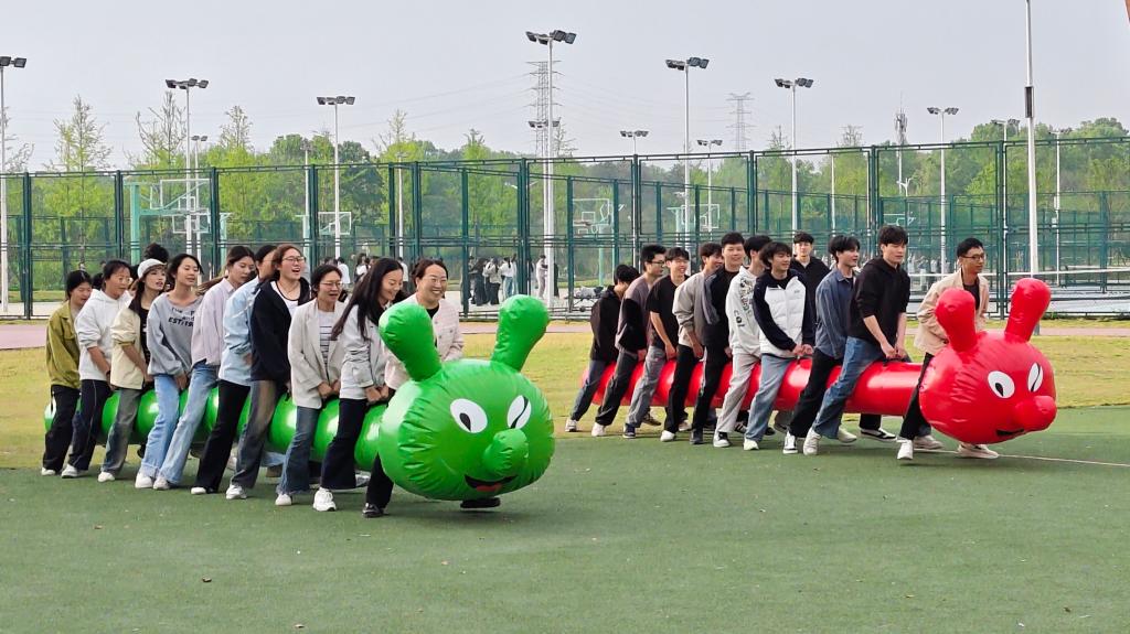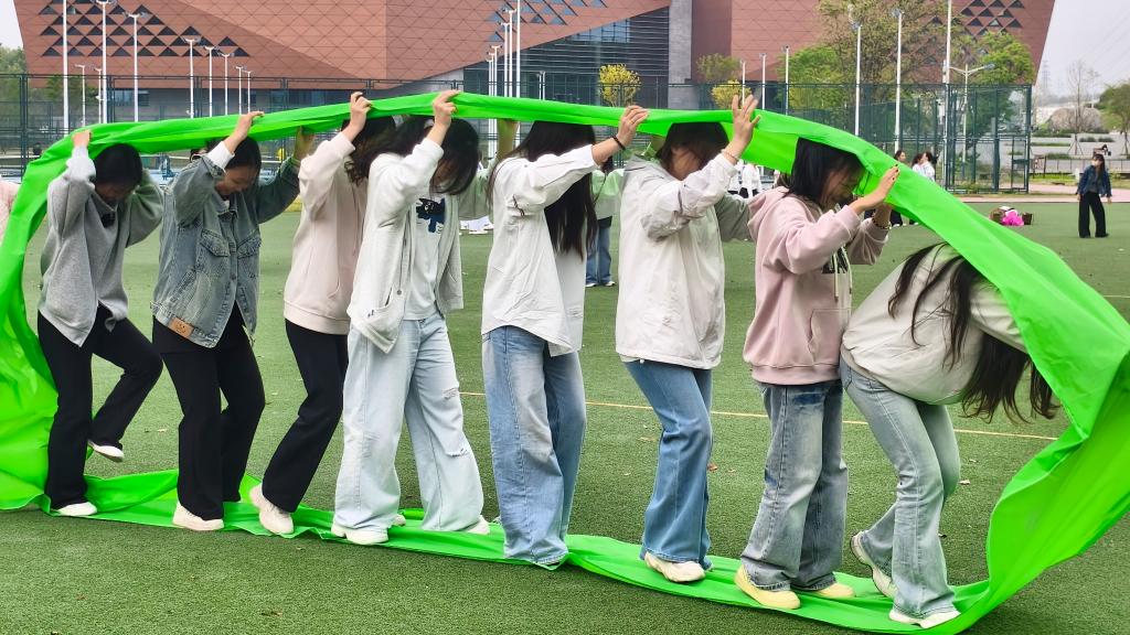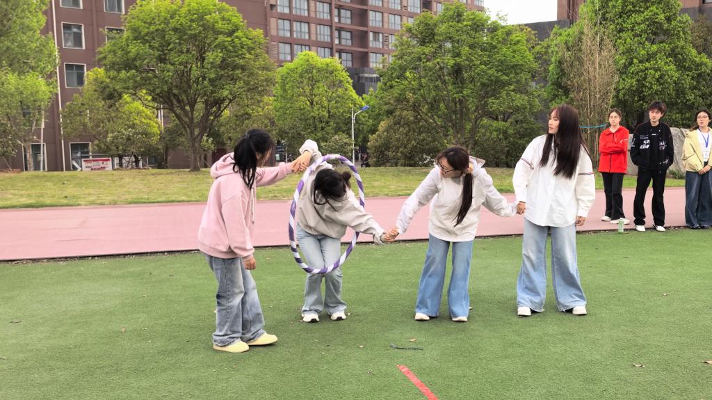 本次素质拓展紧扣“关注心灵健康,凝聚青春力量”主题,结合大学生心理发展需求与春季身心特点,精心设计一圈到底、陆地龙舟、车轮滚滚、同心击鼓四大游戏,将团队协作意识培养与心理健康教育有机融合,让学生在趣味互动中释放压力、增进信任、提升集体归属感。