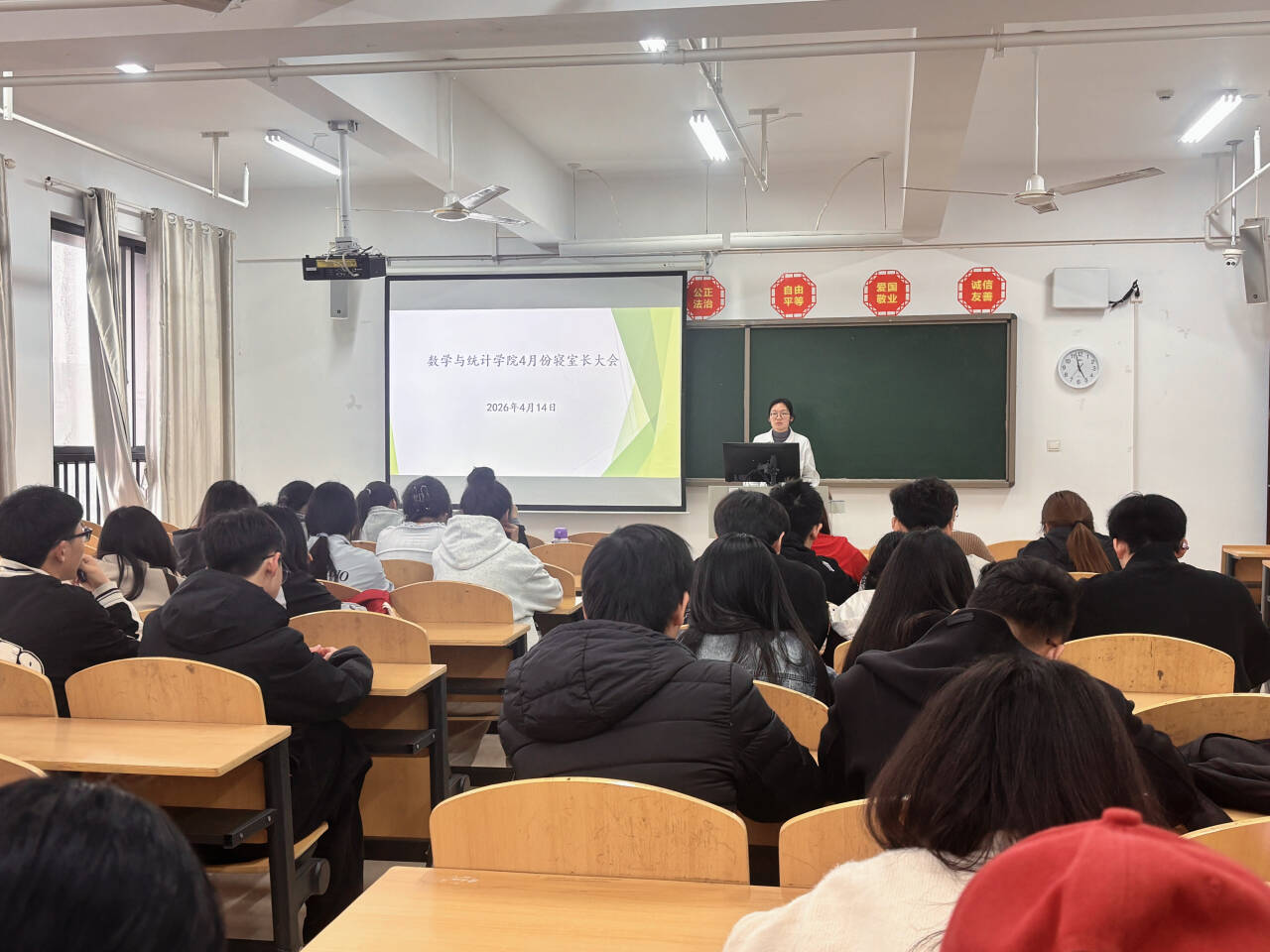 为筑牢学生宿舍安全防线,规范宿舍管理秩序,4月14日下午,数学与统计学院在综合楼506教室召开4月份寝室长工作会议,学院辅导员江燕老师及2025级全体寝室长共同参加本次会议。