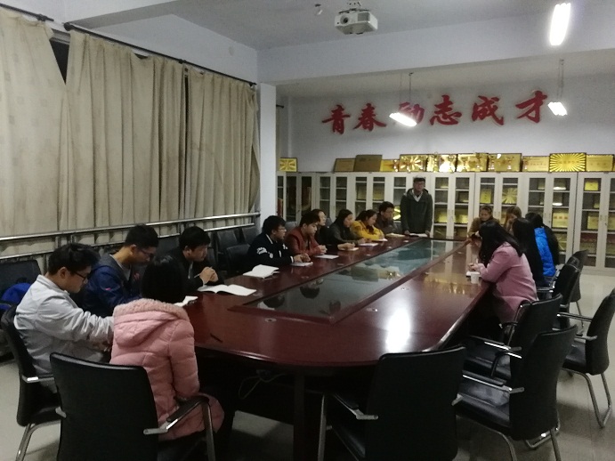 辅导员朱纪诚负责第三组,邀请信阳师范学院物理电子工程学院辅导员黄钰莹、学生会主席龚佳全及部分班级班长、团支书进行学习交流活动,并组织主题班会观摩活动。
