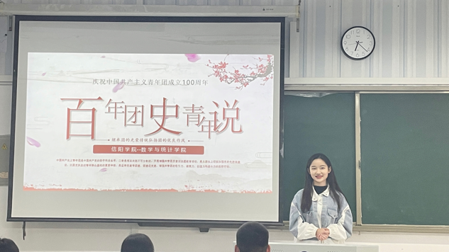 为迎接建团百年,深入学习贯彻习近平总书记系列重要讲话精神,激励广大青年唱响“请党放心,强国有我”的时代最强音,数学与统计学院开展“百年团史青年说”—青年大学生讲团史大赛,学院学工干事田媛、全体辅导员出席本次比赛并担任评委。