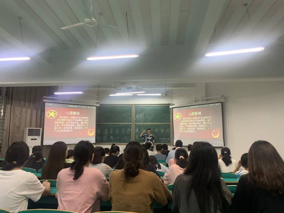 活动中各班团支书在学院团总支书记胡涛老师的带领下通过主题教育形式,带领本班同学们学习“九·一八”事变的时代背景、事件经过、历史影响,并且观看了有关爱国主义影片《横空出世》横空出。“前事不忘,后事之师”,时间可以过去,历史不能忘却。作为当代大学生,要做到的不仅是提升自身综合素质,也要时刻牢记自己身上肩负的时代使命。