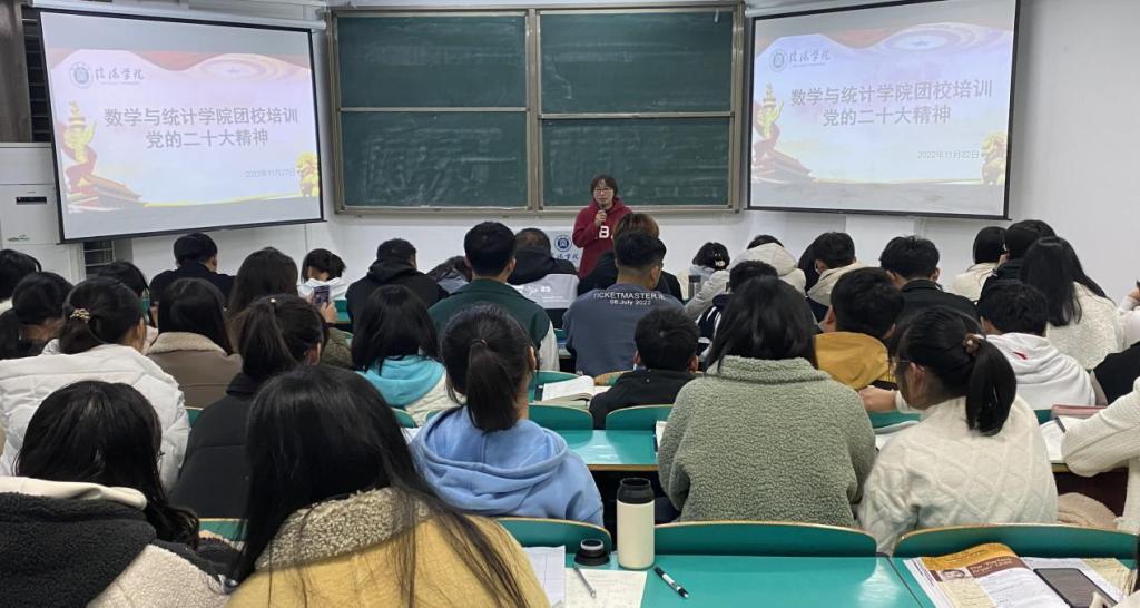 根据我校《关于举办2022级新生团校的通知》文件精神,为深入学习贯彻党的二十大精神,引导全体团员“听党话,跟党走”,11月22日晚,数学与统计学院在数计楼106教室进行团校培训第一讲,学生党支部书记田媛主讲。