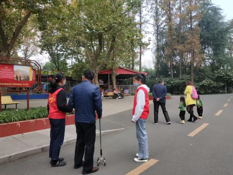 浉河公园是信阳市中心城区的一座综合性公园,志愿者乘坐公交车到达目的地后,怀揣着蓬勃朝气,积极地投入到自己的工作中。捡起路面的垃圾并对其进行分类,将公园的死角清理干净,为市民指明道路方向。公园里队员们忙碌的身影在蓝天白云的映衬下格外耀眼,在志愿者的努力下,整个公园的环境焕然一新。