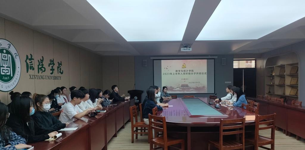 为深入学习宣传贯彻党的二十大精神,加强对入党积极分子的教育培养,5月9日上午,数学与统计学院在数计楼407会议室举办2023年上半年入党积极分子培训班开班仪式,党总支副书记刘颖方、学生党支部书记田媛、组织员范学琴及入党积极分子共同参加本次开班仪式,仪式由田媛主持。