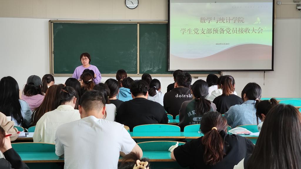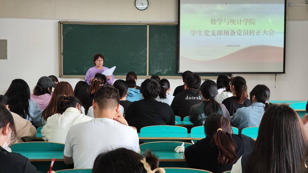 5月20日,数学与统计学院在数计楼309教室召开党员大会,讨论预备党员转正暨接收预备党员事宜。学生党支部书记田媛、组织员范学琴、全体学生党员参会,会议由田媛主持。