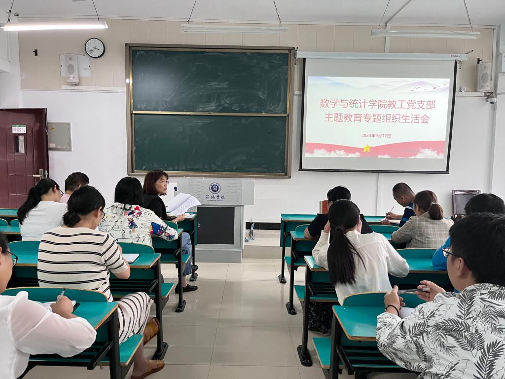 9月12日,数学与统计学院教工党支部在数计楼203教室召开学习贯彻习近平新时代中国特色社会主义思想主题教育专题组织生活会,会议由支部书记张聪主持,全体教工党员参加会议。学院党总支书记刘颖方以普通党员身份参会。