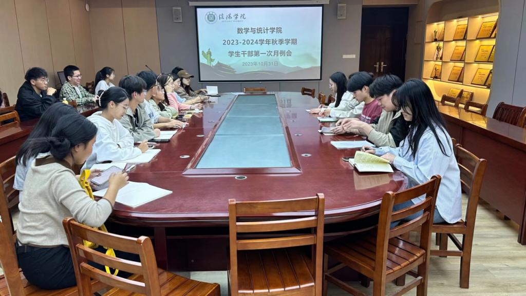 为扎实数学与统计学院学生会各项工作顺利展开,加强学生会各部门之间交流合作。10月31日数学与统计学院在数计楼407会议室召开秋季学生干部例会。会议由主席团成员、各部门部长以及各年级班委代表参加。
