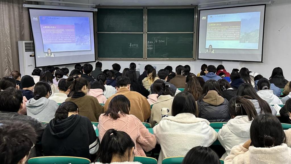 为深入学习贯彻党的二十大精神,坚持学思用贯通、知信行统一,根据党校整体安排,11月10日晚,我院第十五期党员发展对象在数计楼106教室进行习近平新时代中国特色社会主义思想学习-《“六个必须坚持”——习近平新时代中国特色社会主义思想的世界观和方法论》专题学习。马克思主义学院熊天玉担任此次党课主讲人。