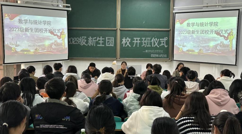 为进一步夯实广大青年团员的理论素养,不断提升团员的实践能力和综合素质。11月21日下午,数学与统计学院在数计楼207教室举办2023级新生团校开班仪式。党总支书记刘颖方、学工干事田媛、团总支书记胡涛、团总支副书记刘世涵及2023级全体学生出席本次开班仪式。