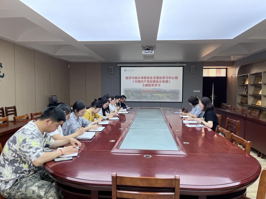 5月7日下午,数学与统计学院党总支理论学习中心组在数计楼407会议室召开《中国共产党纪律处分条例》主题学习活动,党总支副书记刘颖方、各总支委员、支部书记参加了学习会,会议由刘颖方主持。