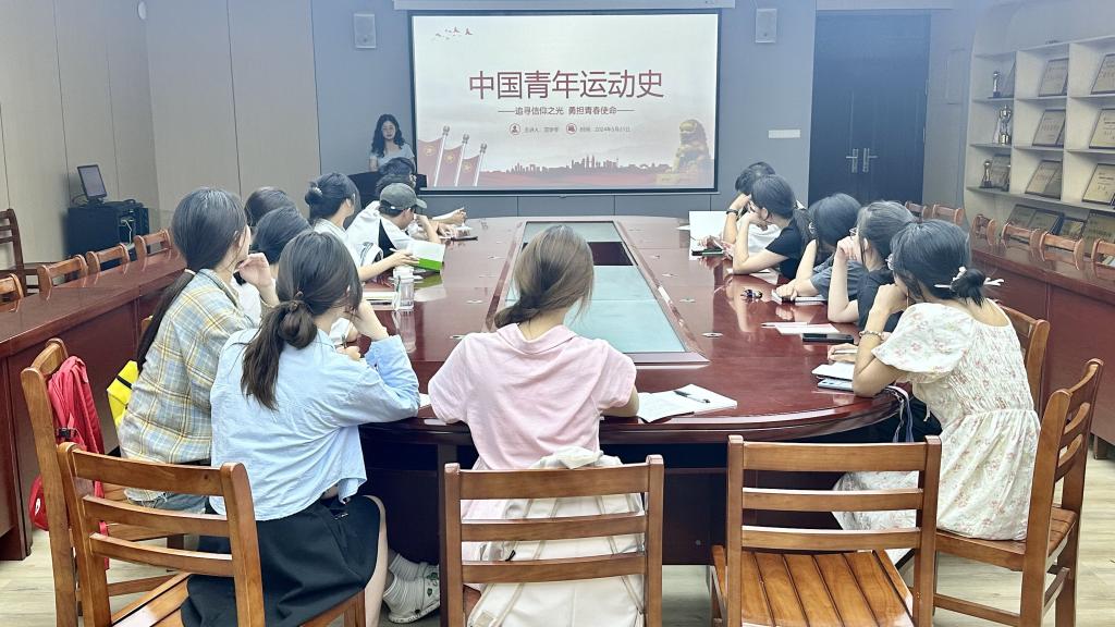 范学琴从新民主主义革命时期、社会主义革命和建设时期、改革开放新时期三个阶段带领同学们回顾百年青年运动史,传递了百年青年运动精神,鼓励团员青年端正价值观、人生观、世界观,坚定理想信念。